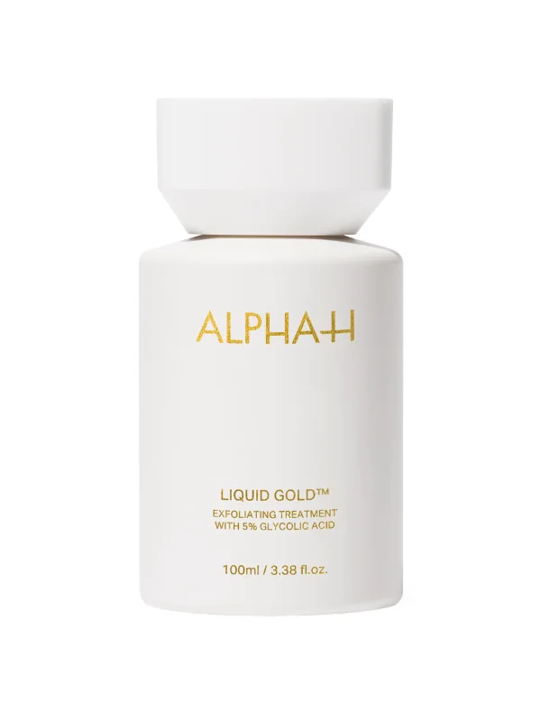 Exfoliërende AHA-behandeling op basis van 5% glycolzuur, zoethout extract en zijde proteïnen. Door de unieke lage pH-waarde (2.8 – 3) dringt Liquid Gold veel dieper door dan andere producten met glycolzuur, wat garant staat voor zichtbare resultaten, vergelijkbaar met een klinische peeling. Liquid Gold geeft de aanmaak van collageen, elastine en hyaluronzuur een enorme boost, pakt rimpeltjes, pigmentatie en zonschade aan en helpt grove poriën en acnelittekens vervagen. De teint wordt egaler, frisser en stralender.